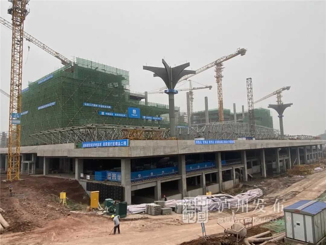 這標(biāo)志著瀘州高鐵站高架站房和側(cè)式站房所有混凝土主體結(jié)構(gòu)全面封頂。接下來,站房建設(shè)將由土建施工轉(zhuǎn)為鋼結(jié)構(gòu)施工,并將同步啟動裝飾裝修。